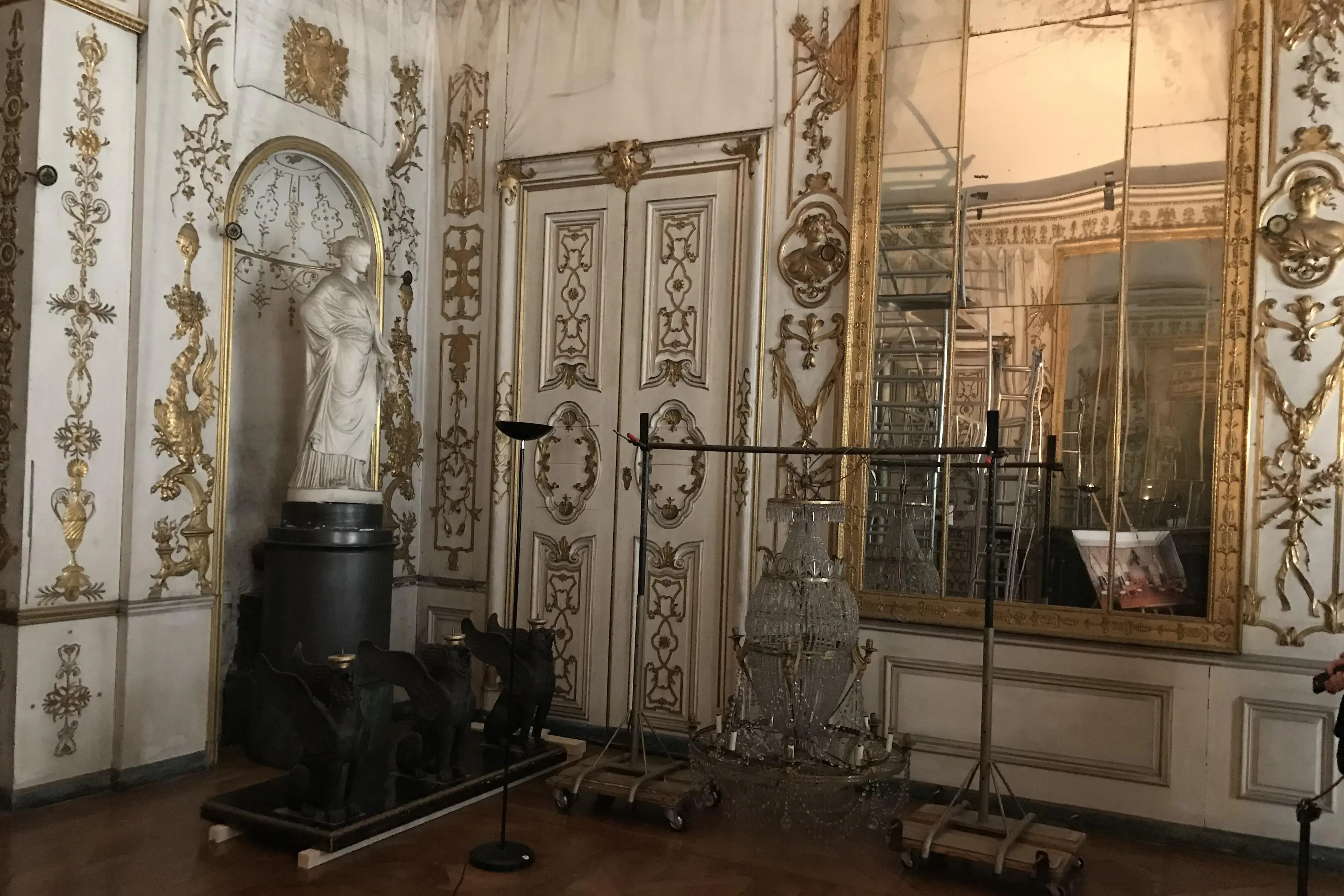 Um die königlichen Räume in ihrem ursprünglichen Glanz wieder erstrahlen zu lassen, müssen im nächsten Schritt etwa 2000 Kunstobjekte konservatorisch betreut und restauriert werden. Die Maßnahmen können hierbei von scheinbar „einfachen“ Reinigungen bis zu hoch komplexen Rekonstruktionen reichen. Ein prominentes Beispiel sind zwei Konsoltische vom Hofarchitekten Nikolaus von Thouret aus dem Audienzzimmer, die extrem aufwendig von jahrhundertealten Staubschichten befreit werden müssen.
